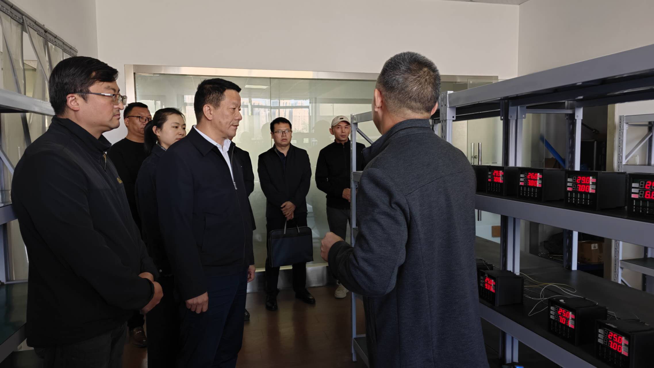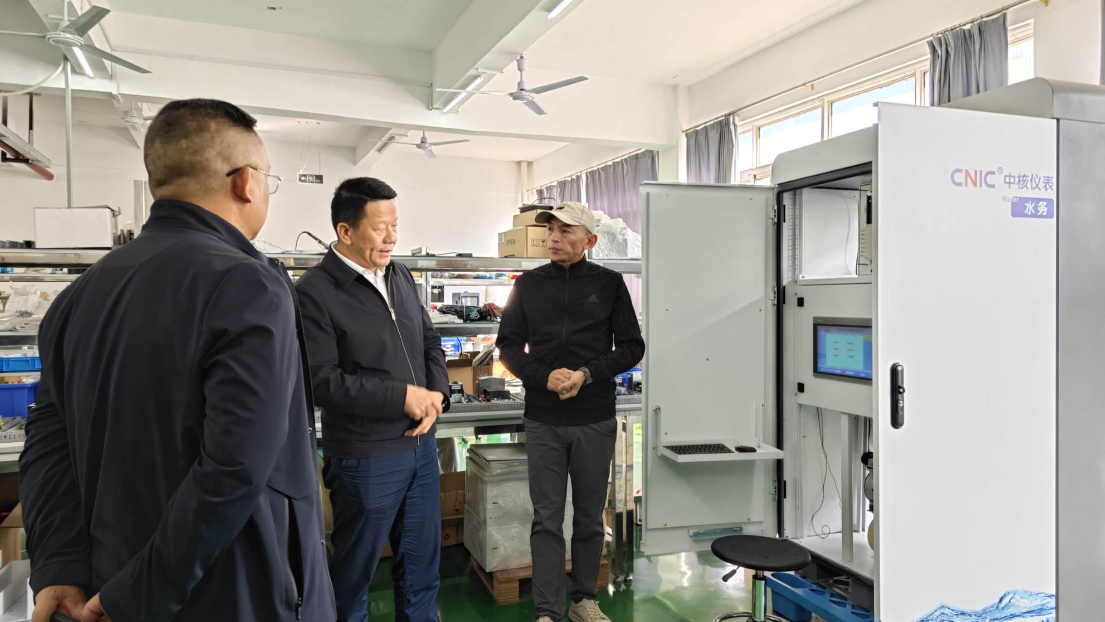各位領(lǐng)導(dǎo)在中核儀表副總經(jīng)理劉國(guó)赤的陪同下,參觀了生產(chǎn)區(qū)、辦公區(qū)及產(chǎn)品展示區(qū),詳細(xì)了解中核儀表在工業(yè)及水務(wù)領(lǐng)域的業(yè)務(wù)布局,沉浸式感受過程控制、水質(zhì)監(jiān)測(cè)儀表從來料加工、組裝測(cè)試一直到包裝出貨的全流程運(yùn)營(yíng)管理。